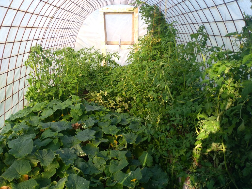 Här kommer bilder på odlingar nära huset, ”under-säsongsodling” på ca 100 kvm med växthus och bärbuskar i nära anslutning: