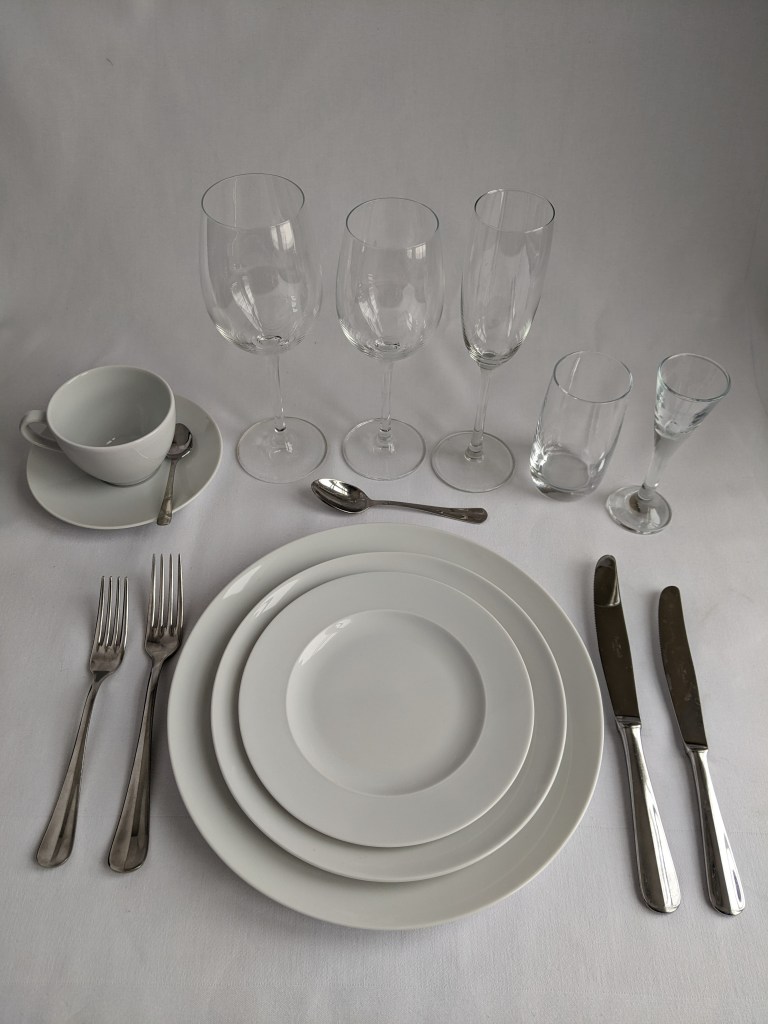 Paketet till bröllop eller annan finare trerättersmiddag, med vinglas i kristall och porslin från Rosenthal. Paket inkluderar även ett champagneglas till välkomstskålen, snapsglas och kaffekopp till tårtan.